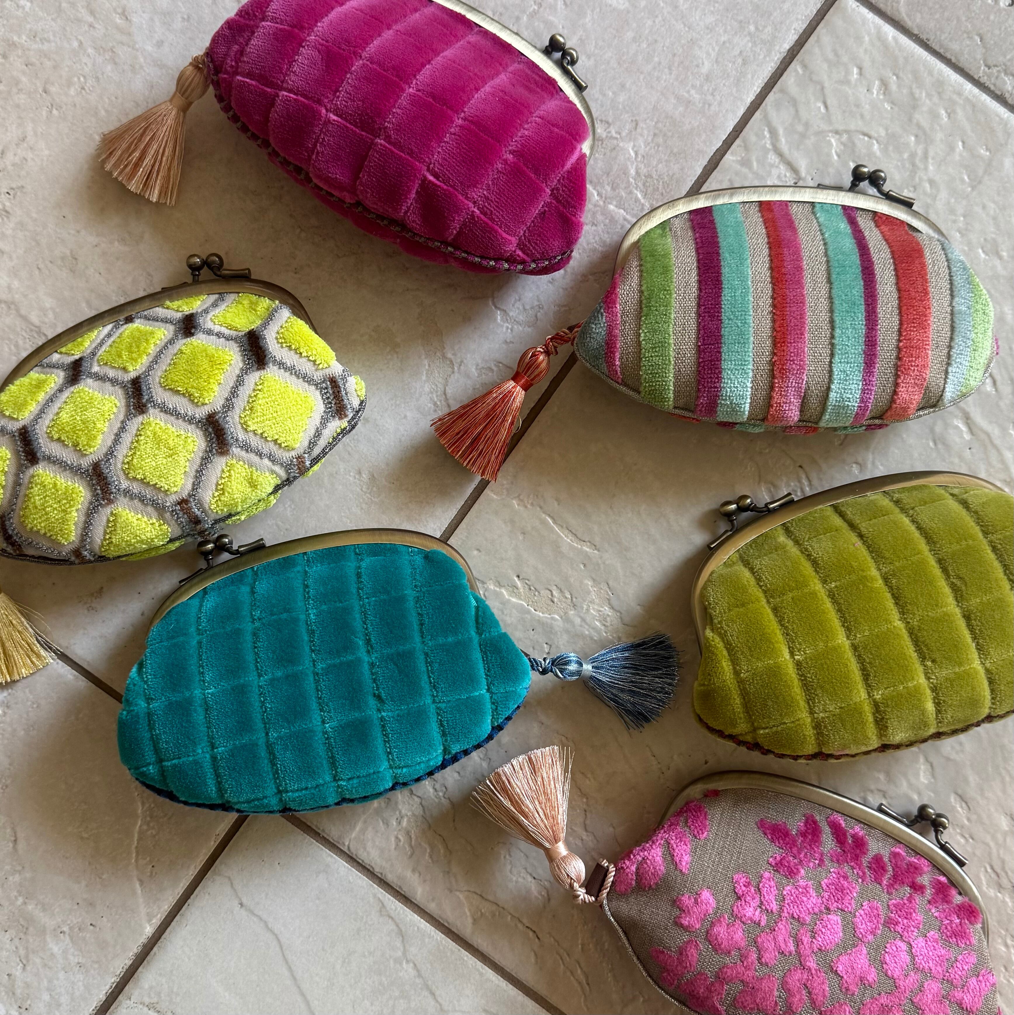 This compact multi-purpose pouch from JOJO reticule features a distinctive side-set kiss-lock closure—classic in structure yet modern in its expression.