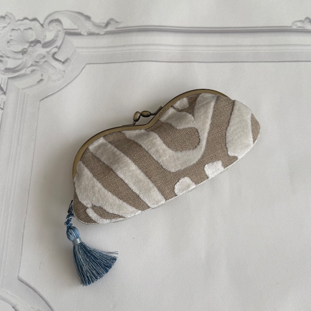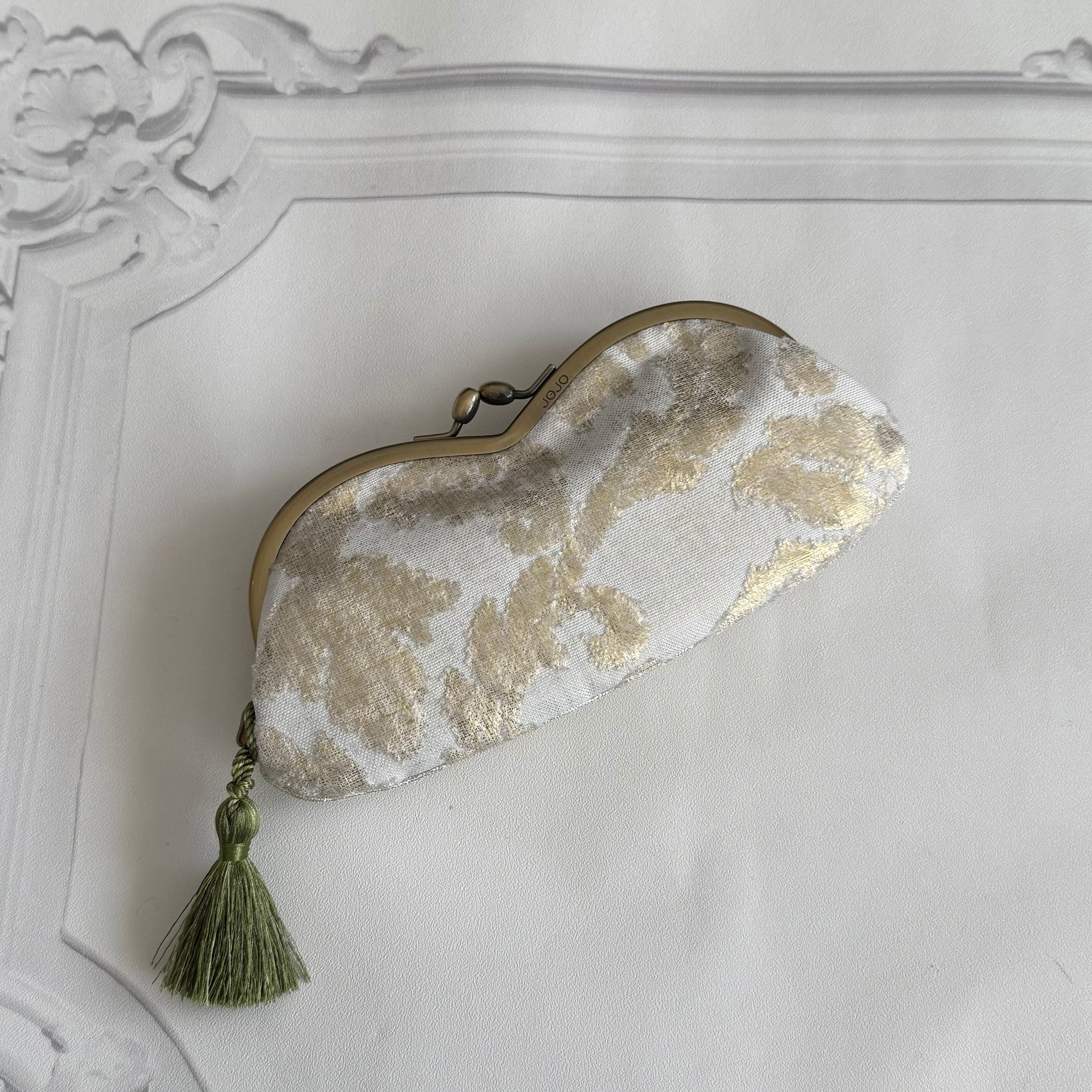 メガネポーチ/ダマスク ホワイト&ゴールド